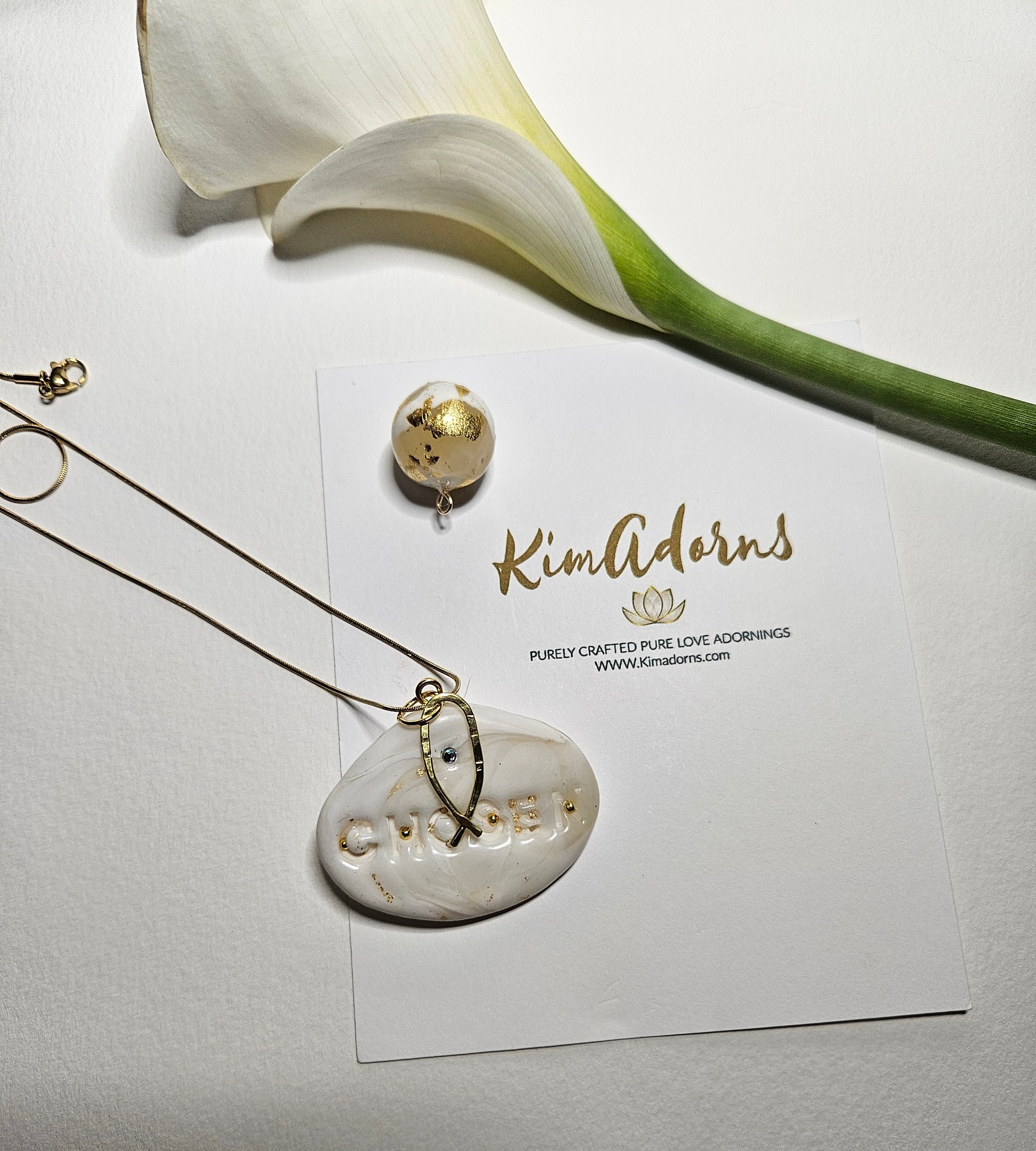 CHOSEN Pendant – Minimal Alabaster Clay Stone Necklace with Ichthys Accent A Presence Piece
