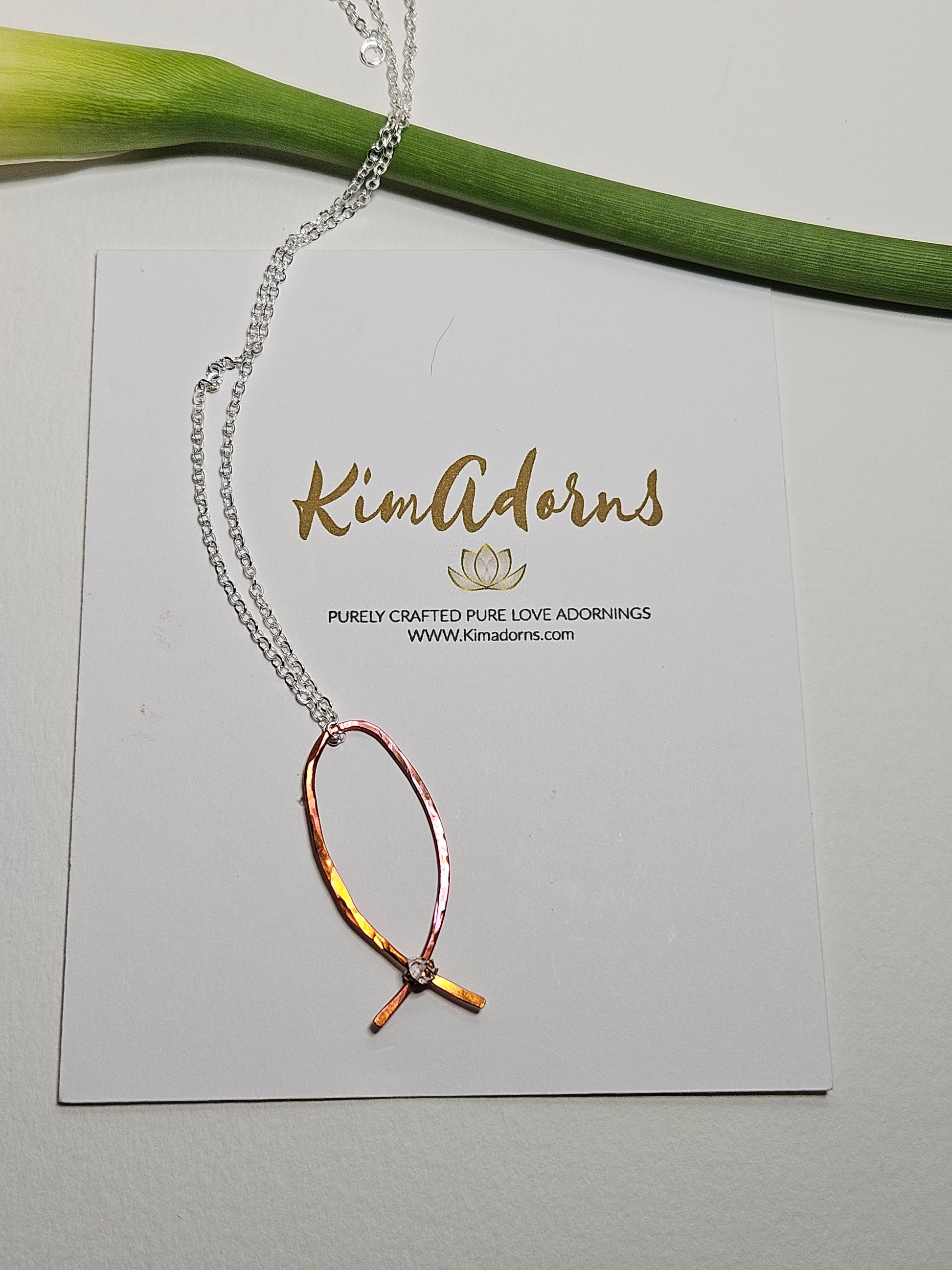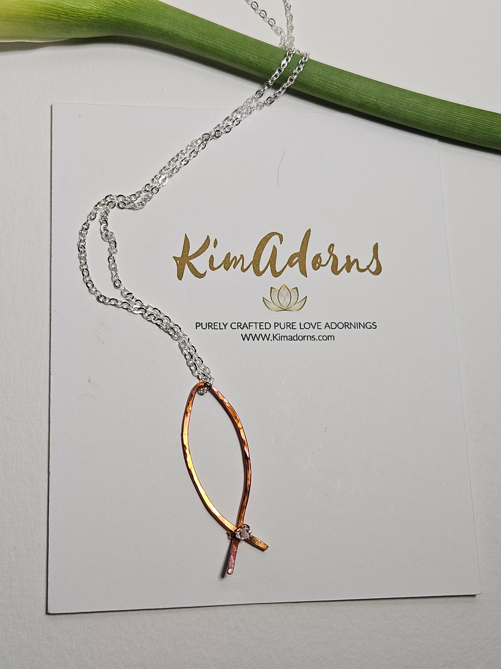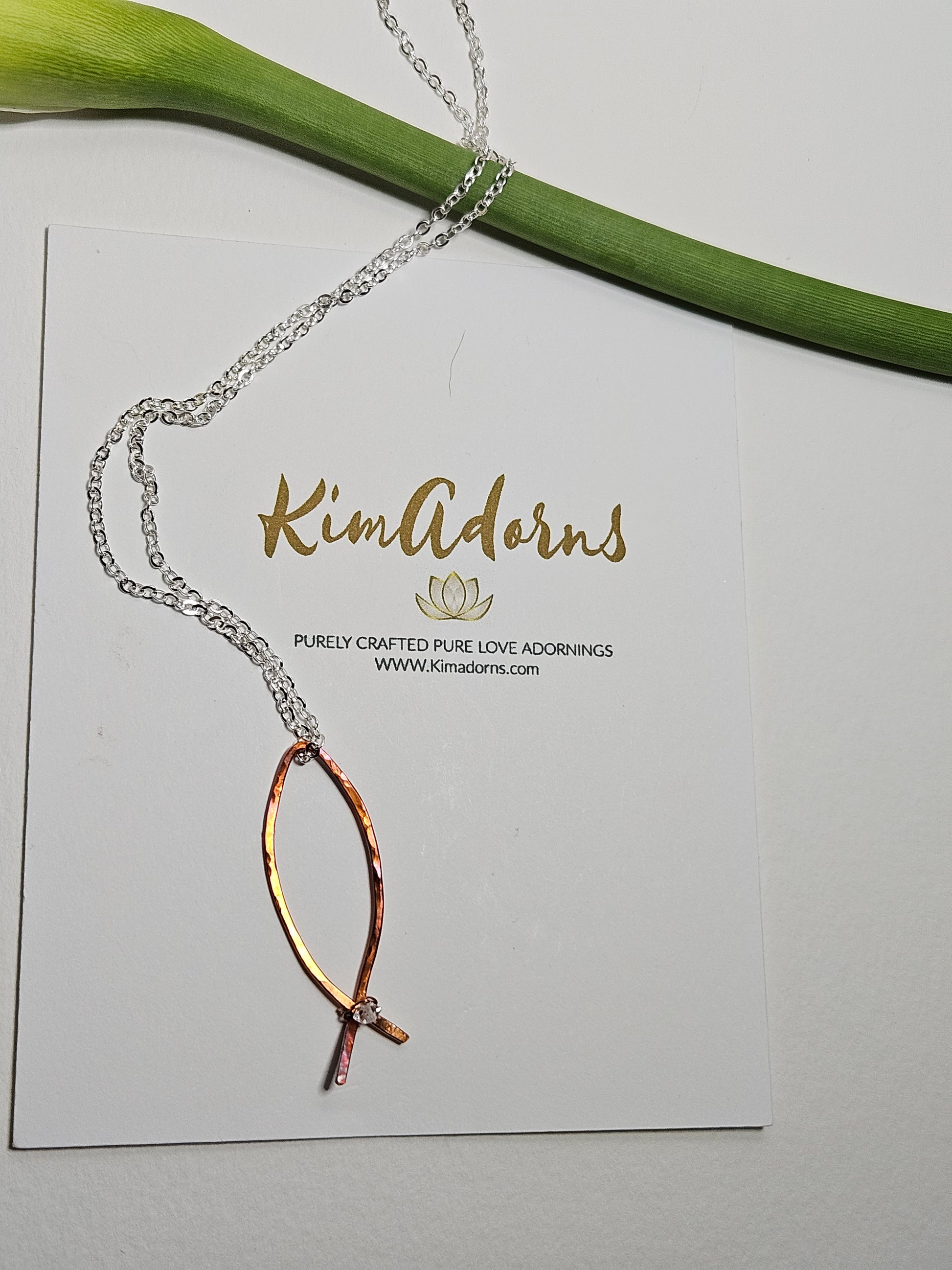 • Hand-forged copper Ichthys (fish symbol)